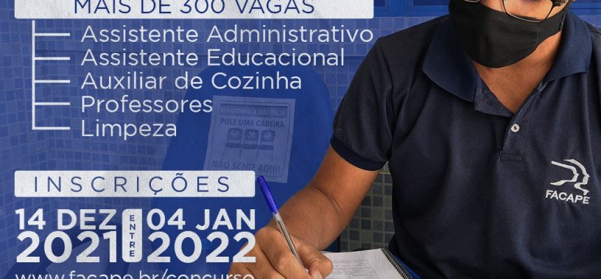 Faculdade de Petrolina – Facape, em parceria com a Prefeitura Municipal está com inscrições abertas para o processo seletivo de profissionais da educação. As vagas são temporárias e para a formação de cadastro para atuação na educação infantil.